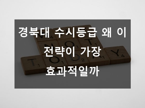 안녕하세요! 요즘 대입 준비로 고민이 많으시죠? 특히 경북대학교 수시전형에서 원하는 성과를 내기란 쉽지 않은 일인데요. 🤔 "수시등급"을 어떻게 관리하고 전략을 세우느냐에 따라 합격 가능성이 달라진다는 사실, 알고 계셨나요? 오늘은 경북대 수시등급의 핵심 포인트와 함께 왜 특정 전략이 가장 효과적인지 상세히 알려드릴게요! 🌟