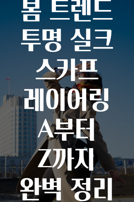 안녕하세요, 패션 덕후 여러분!👗🌈 전국 각지에서 벚꽃이 피어나며 봄의 향연이 시작되고 있는데요, 이 아름다운 계절에 딱 어울리는 '투명 실크 스카프 레이어링'을 제대로 즐기고 싶지 않으세요?🤔🎀 오늘은 모든 스타일링 팁과 트렌드 비법을 A부터 Z까지 🍃 꼼꼼하게 정리해서 보여드릴게요! 준비됐나요? 그럼, #봄패션의 모든 것 시작합니다!🚀