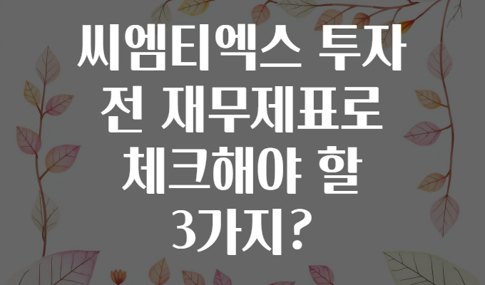 🤔 씨엠티엑스 투자 전, 재무제표로 꼭 체크해야 할 3가지! 💰📊
