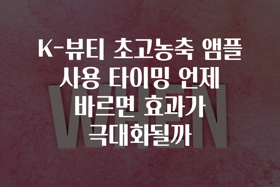 K-뷰티 초고농축 앰플 사용 타이밍 언제 바르면 효과가 극대화될까? 🌟